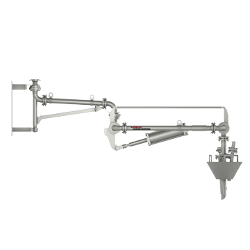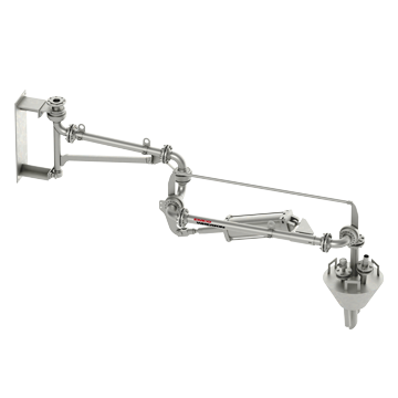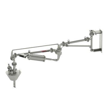 Este brazo de carga permite un largo alcance y es adecuado para aplicaciones en las que no se puede ubicar con precisión la brida de conexión de la cisterna.